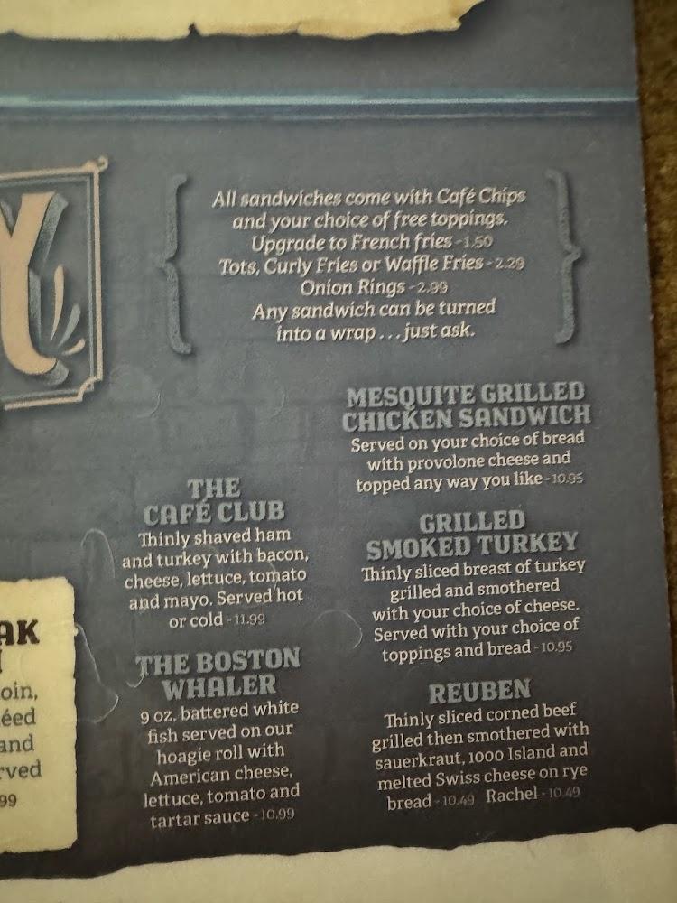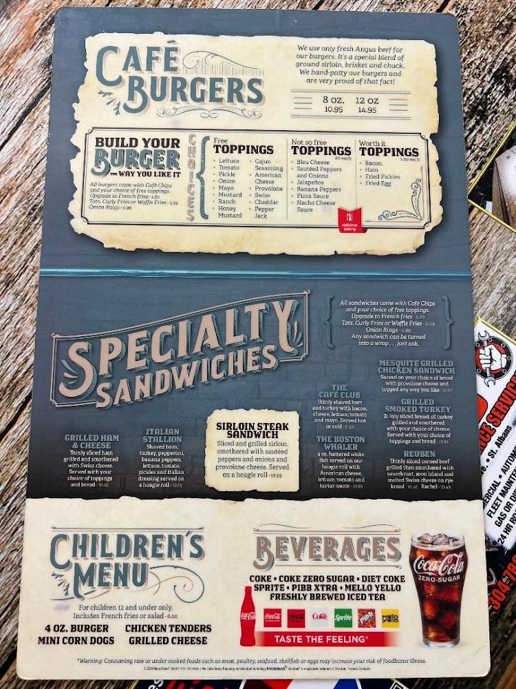 Appetizers such as Cafe Mushrooms and Chicken Wings are perfect for sharing. Daily specials vary, adding excitement to the experience. Desserts are also available, with cheesecake being a favorite. The café prides itself on freshness and quality, reflecting the care put into every plate served.